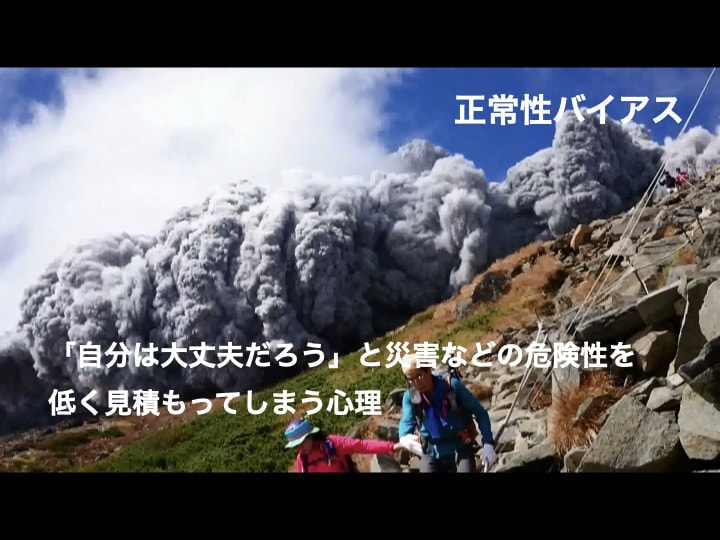 「正常性バイアス」とは、「自分は大丈夫だろう」と災害などの危険性を低く見積もってしまう心理です。